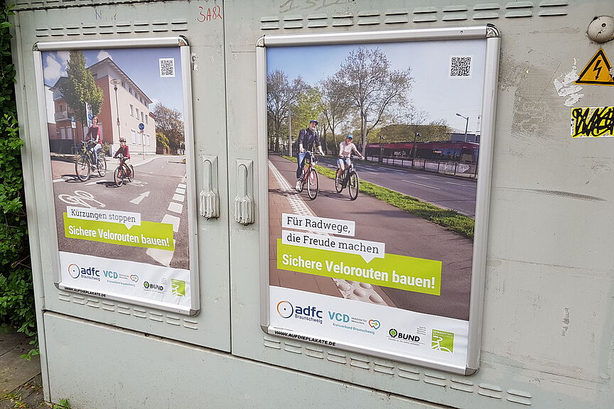 VCD, ADFC, BUND und die Initiative Fahrradstadt Braunschweig protestieren mit einer Plakataktion gegen die Kürzungen bei Velorouten und Pocketparks. Hintergrund: Zur Finanzierung des Schwimmbads in Gliesmarode sollen Mittel aus dem Radverkehrs- und Klimaanpassungsbudget umgewidmet werden. Eine entsprechende Beschlussvorlage liegt dem Rat der Stadt vor. „Es darf nicht sein, dass wichtige Zukunftsprojekte gegeneinander ausgespielt werden”, betonen die Initiativen. „Ein ausreichendes Angebot an Schwimmkursen ist wichtig, aber nicht auf Kosten sicherer Radwege und dringend benötigter grüner Oasen in der Stadt.” Hier die ganze Pressemitteilung. Ein Anschreiben an die Politik findet man unter Medien zum Artikel.